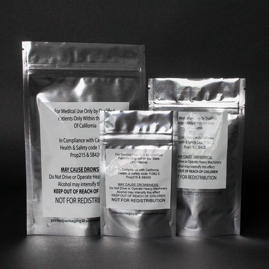 3.125" x 5.0" x 2.0 1/8th bag Clear/Silver SB420 H&S Disclaimer on Silver Side ;