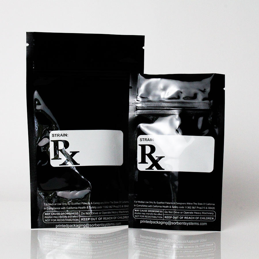 4.0" x 6.41" x 2.25" Clear/Black RX SB420 H&S Disclaimer on Black Side; Fits 1/4 ounce = 7 grams of flowers 1,000/case
