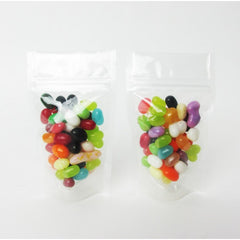 3.125" x 5.0" x 2.0" Clear/Clear Stand Up Pouch with ZipSeal and tear notch; Fits 1/8th = 3.5 grams of flowers 1,000/case