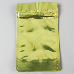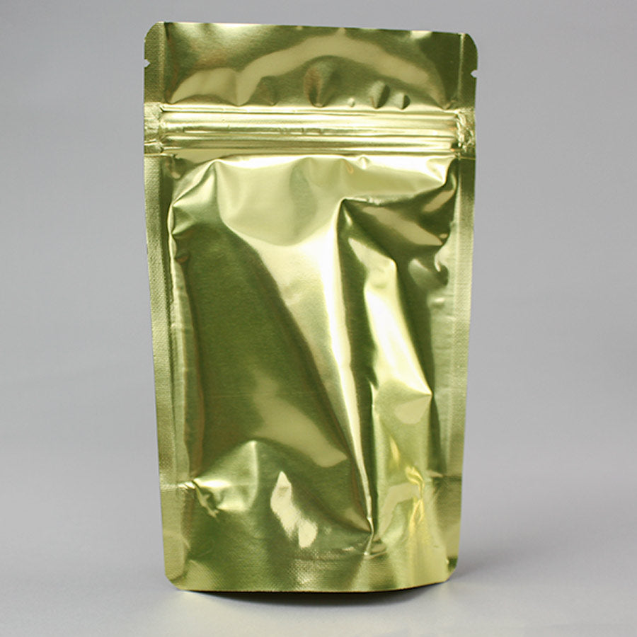 4.0" x 6.41" x 2.25" Gold/Gold Stand Up Pouch with ZipSeal, tear notch and rounded corners;Fits 1/4th = 7 grams of flowers1,000/case