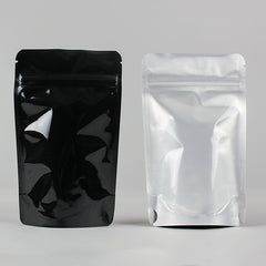 4.0" x 6.41" x 2.25" Clear/Black Stand Up Pouch with ZipSeal, Tear Notch with Rounded Corners;