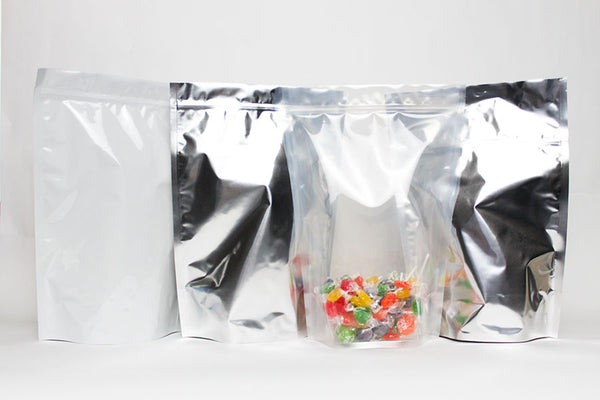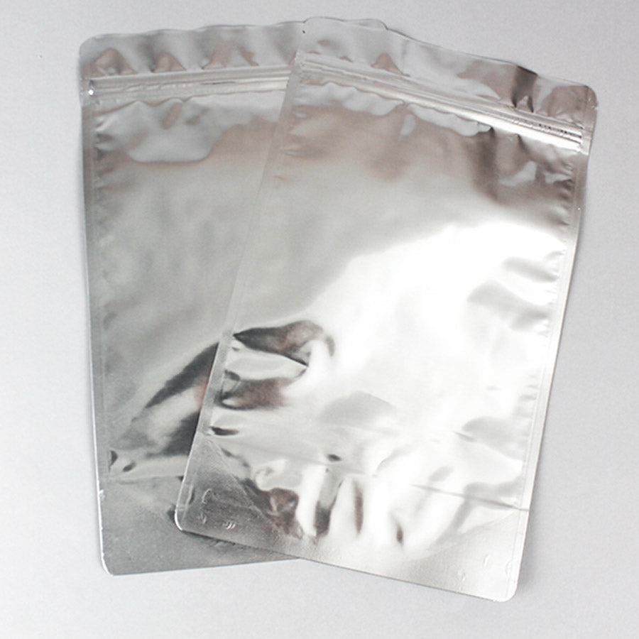 11.0" X 16.2" X 5.75" Silver/Silver Stand Up Pouch with ZipSeal, tear notch and Round Corners;