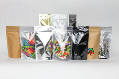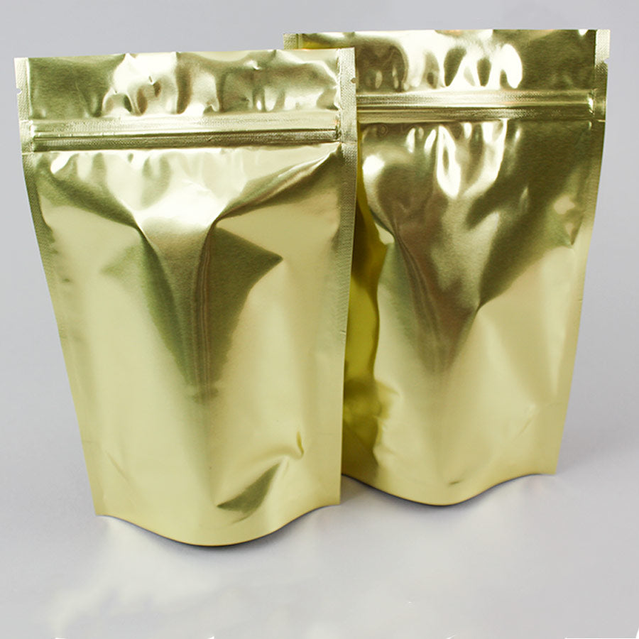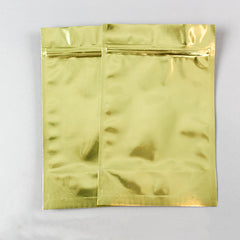 5.0" x 8.0" x 3.0" Gold/Gold Stand Up Pouch with ZipSeal and tear notch;