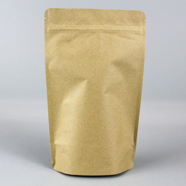 6.0" x 9.37" x 3.25" Kraft/Kraft Stand Up Pouch with ZipSeal and tear notch;