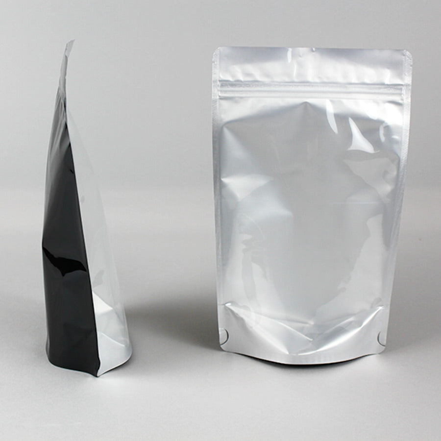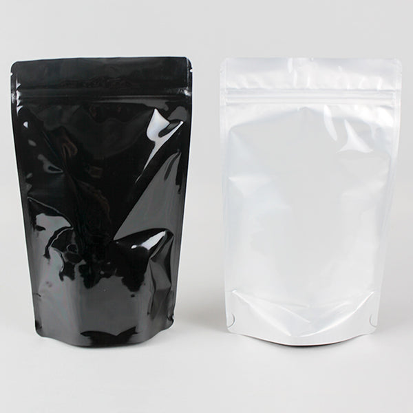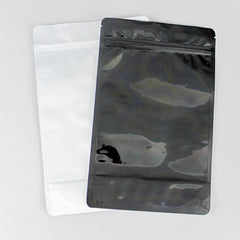 6.0" x 9.37" x 3.25" Clear/Black Stand Up Pouch with ZipSeal, Tear Notch and Rounded Corners;
