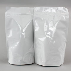 6.69" x 11.0" x 3.5" White/White Stand Up Pouch with ZipSeal and tear notch;