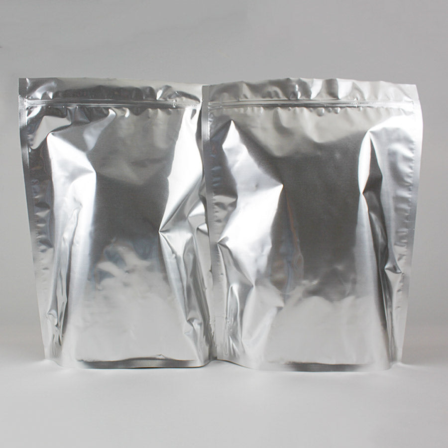 14.5" X 19.0" X 6.0" Silver/Silver Stand Up Pouch with ZipSeal and tear notch;Fits 32oz = 448 grams of flowers250/case