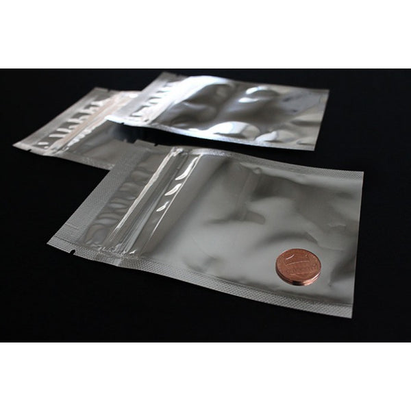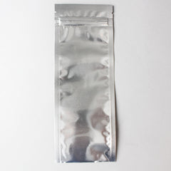 3.5" x 9.5"- 4.3 mil Silver MylarFoil pouch with tamper evident ZipSeal and tear notch