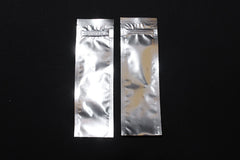 3.0" X 9.5" Silver MylarFoil pouch with tamper evident ZipSeal and tear notch;
