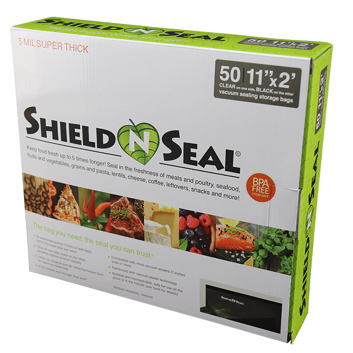 11" x 24" SHIELD N SEAL 5 mil Thick ODOR-RESISTANT Precut Black/Clear Vacuum Bags (Box of 50)
